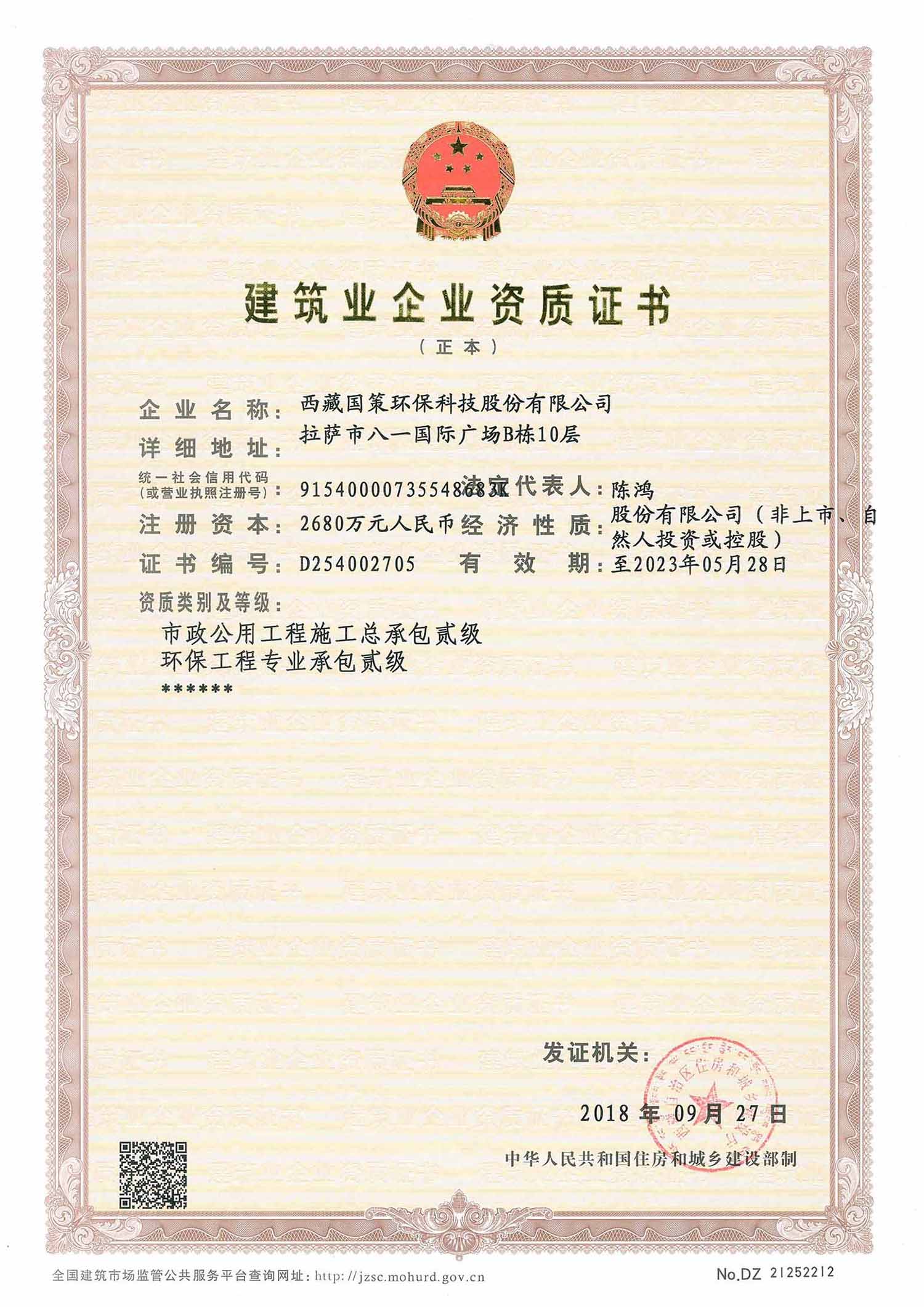 國策環(huán)保擁有住房和城鄉(xiāng)建設(shè)部頒發(fā)的建筑業(yè)企業(yè)市政公用工程施工總承包貳級資質(zhì)、環(huán)保工程專業(yè)承包貳級資質(zhì),同時擁有環(huán)保、市政、機(jī)電等各類專業(yè)工程技術(shù)人員共計40余人,并先后承擔(dān)了眾多污水廠、垃圾填埋場、自來水廠、醫(yī)療廢物處置中心等項目的施工任務(wù)。
