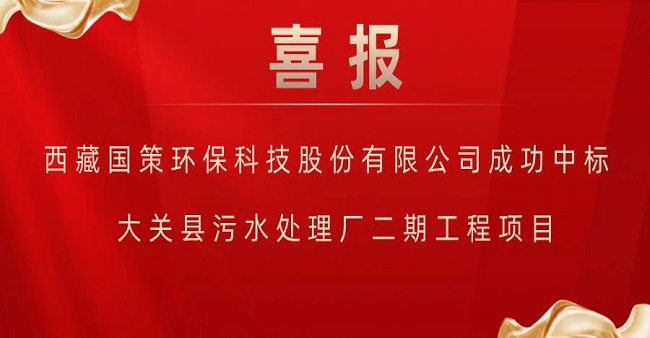 國策環(huán)保成功中標大關縣污水處理廠二期工程(二次)BOT項目
