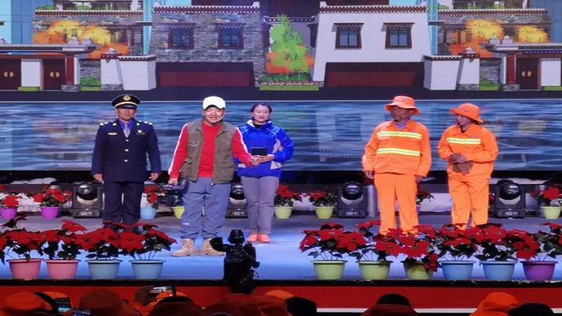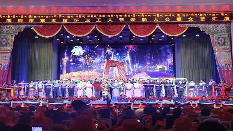 為慶?!碍h(huán)衛(wèi)工人節(jié)”這一個(gè)平凡而偉大的節(jié)日,鼓舞全體環(huán)衛(wèi)工人的士氣,10月26日晚,由日喀則市委、市政府主辦,市城市管理和綜合執(zhí)法局、市文化局承辦的主題為“頌現(xiàn)代化新西藏 展環(huán)衛(wèi)工新風(fēng)采”第五屆環(huán)衛(wèi)工人節(jié)表彰大會(huì)暨文藝匯演在日喀則市職業(yè)技術(shù)學(xué)院舉行,國(guó)策環(huán)保日喀則分公司作為參與方積極參與了此次活動(dòng)。