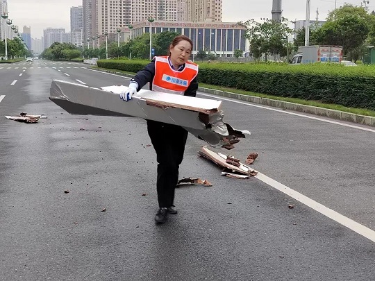 每年夏天臺風天氣,暴雨過后,大量的泥沙、淤泥堆積在道路上,影響行人和車輛的通行。每當這種時候禤艷輝總是身先士卒,帶領分公司一線工人排沙清道,第一時間將路面沙、泥、垃圾全部清掃干凈。
